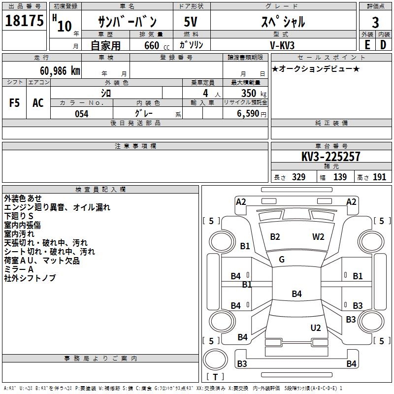 SUBARU SAMBAR VAN - лот 18175