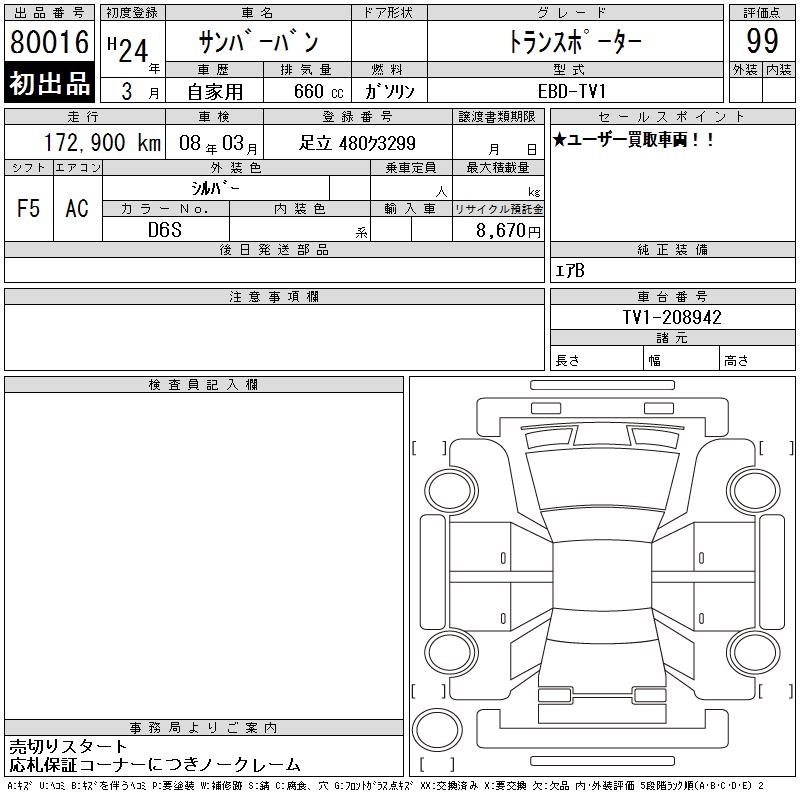 SUBARU SAMBAR VAN - лот 80016