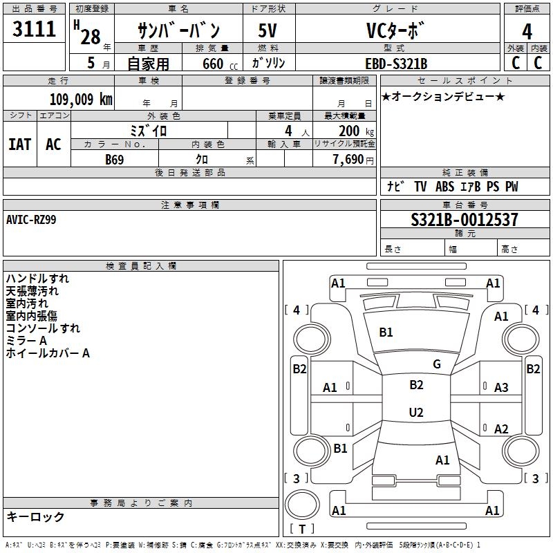 SUBARU SAMBAR VAN - лот 3111