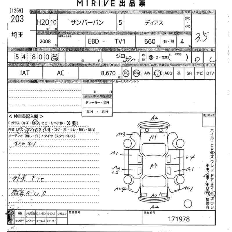 SUBARU SAMBAR VAN - лот 203