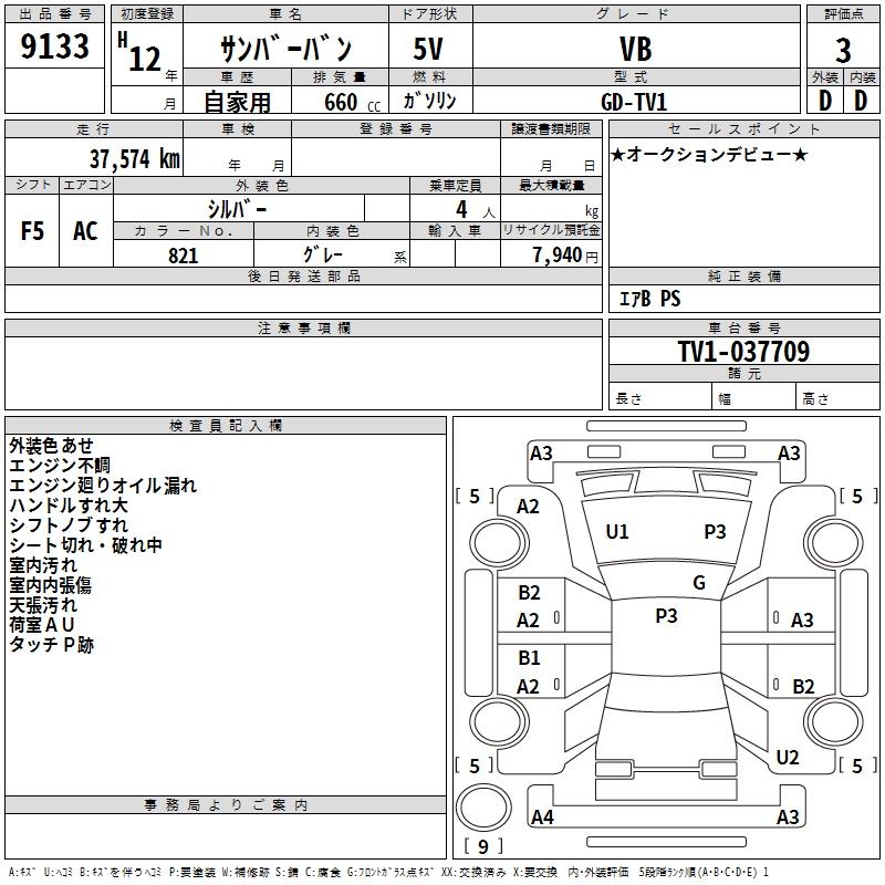 SUBARU SAMBAR VAN - лот 9133