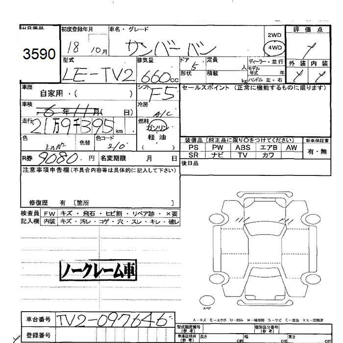 SUBARU SAMBAR VAN - лот 3590