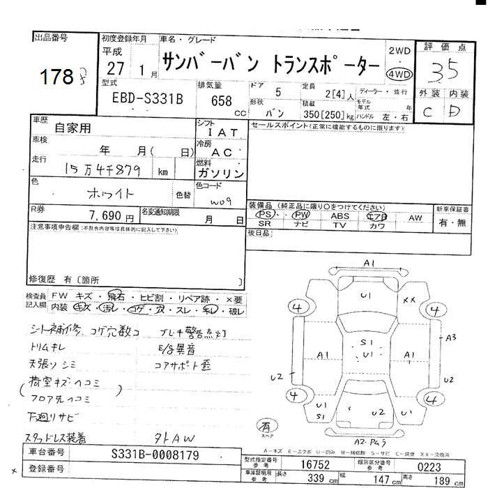 SUBARU SAMBAR VAN - лот 178