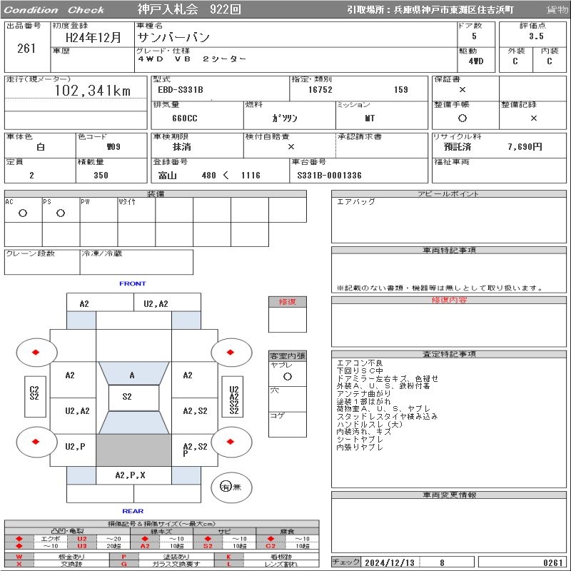 SUBARU SAMBAR VAN - лот 261