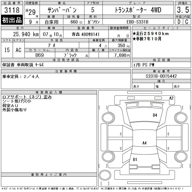 SUBARU SAMBAR VAN - лот 3118