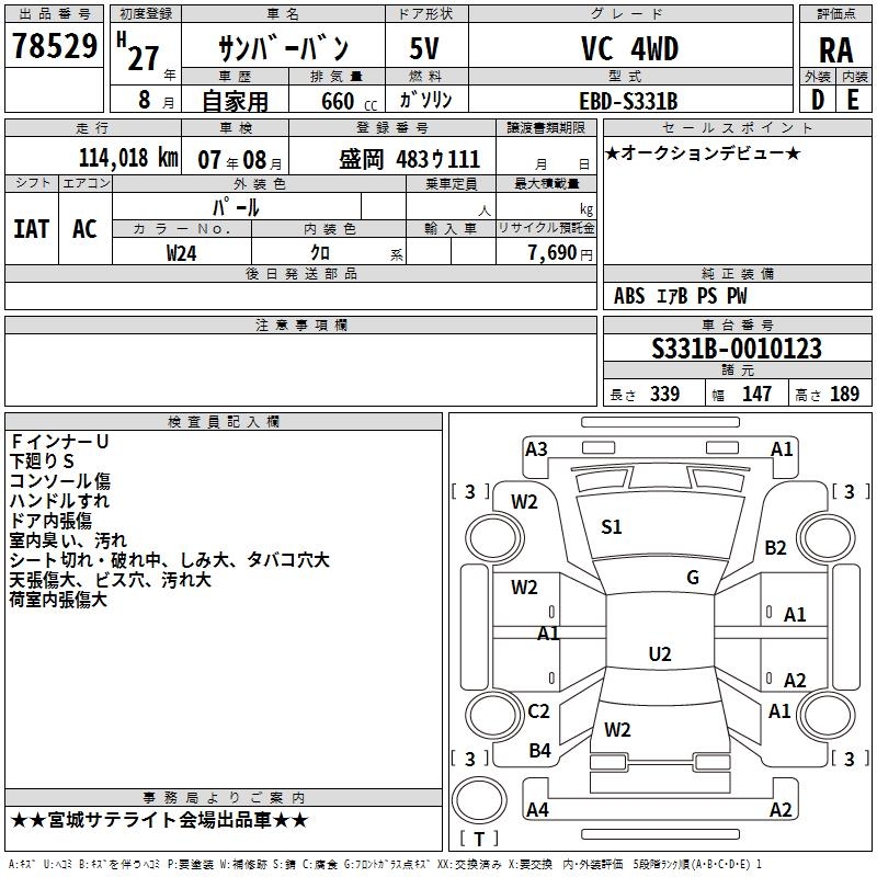 SUBARU SAMBAR VAN - лот 78529