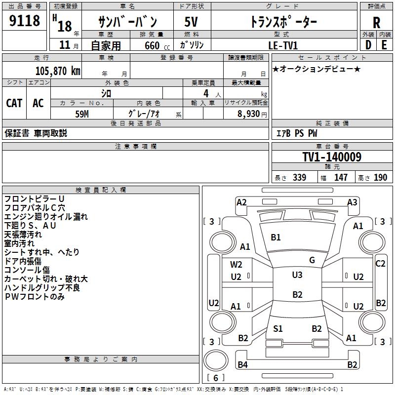 SUBARU SAMBAR VAN - лот 9118