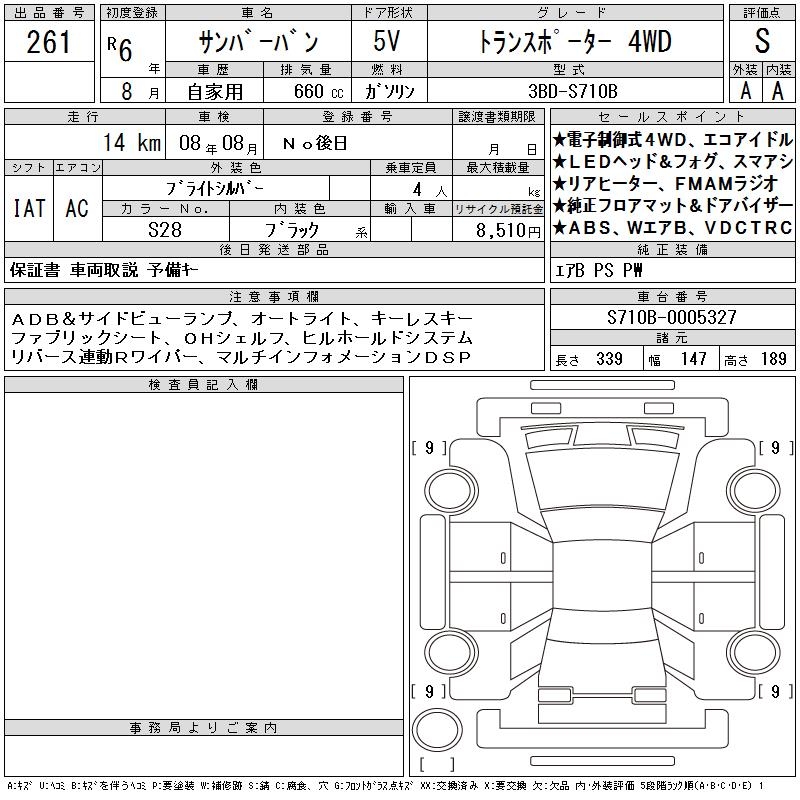 SUBARU SAMBAR VAN - лот 261