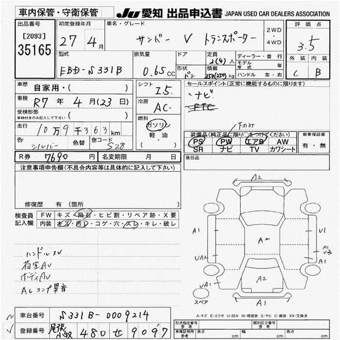 SUBARU SAMBAR VAN - лот 35165