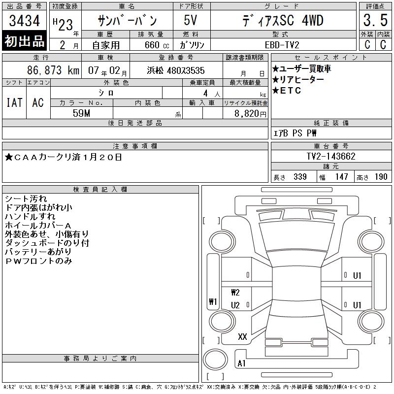 SUBARU SAMBAR VAN - лот 3434