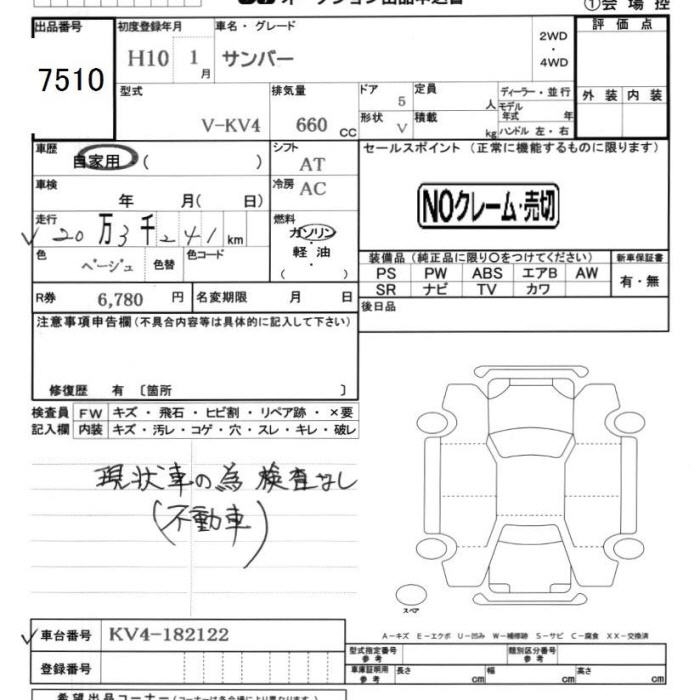 SUBARU SAMBAR VAN - лот 7510