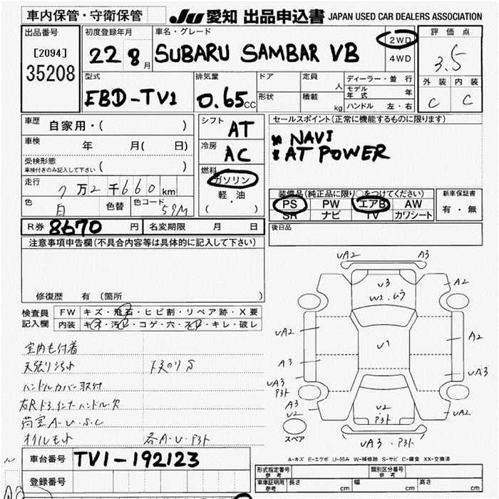 SUBARU SAMBAR VAN VB - лот 35208