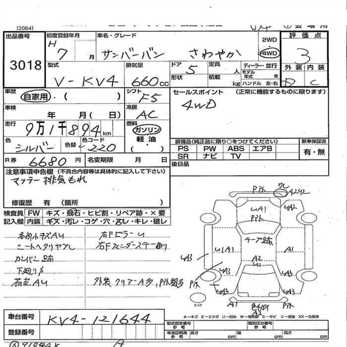 SUBARU SAMBAR VAN 4WD SAWAYAKA - лот 3018