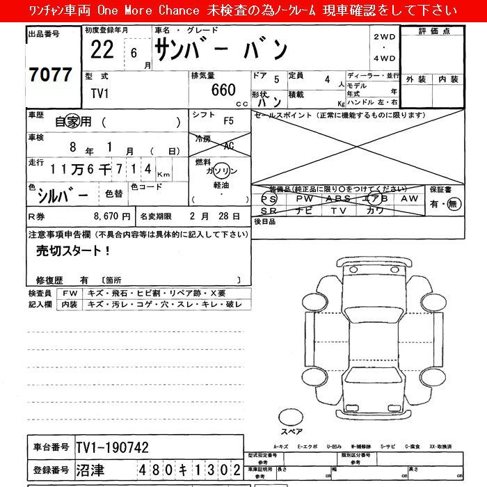SUBARU SAMBAR VAN - лот 7077