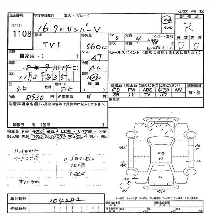 SUBARU SAMBAR VAN - лот 1108