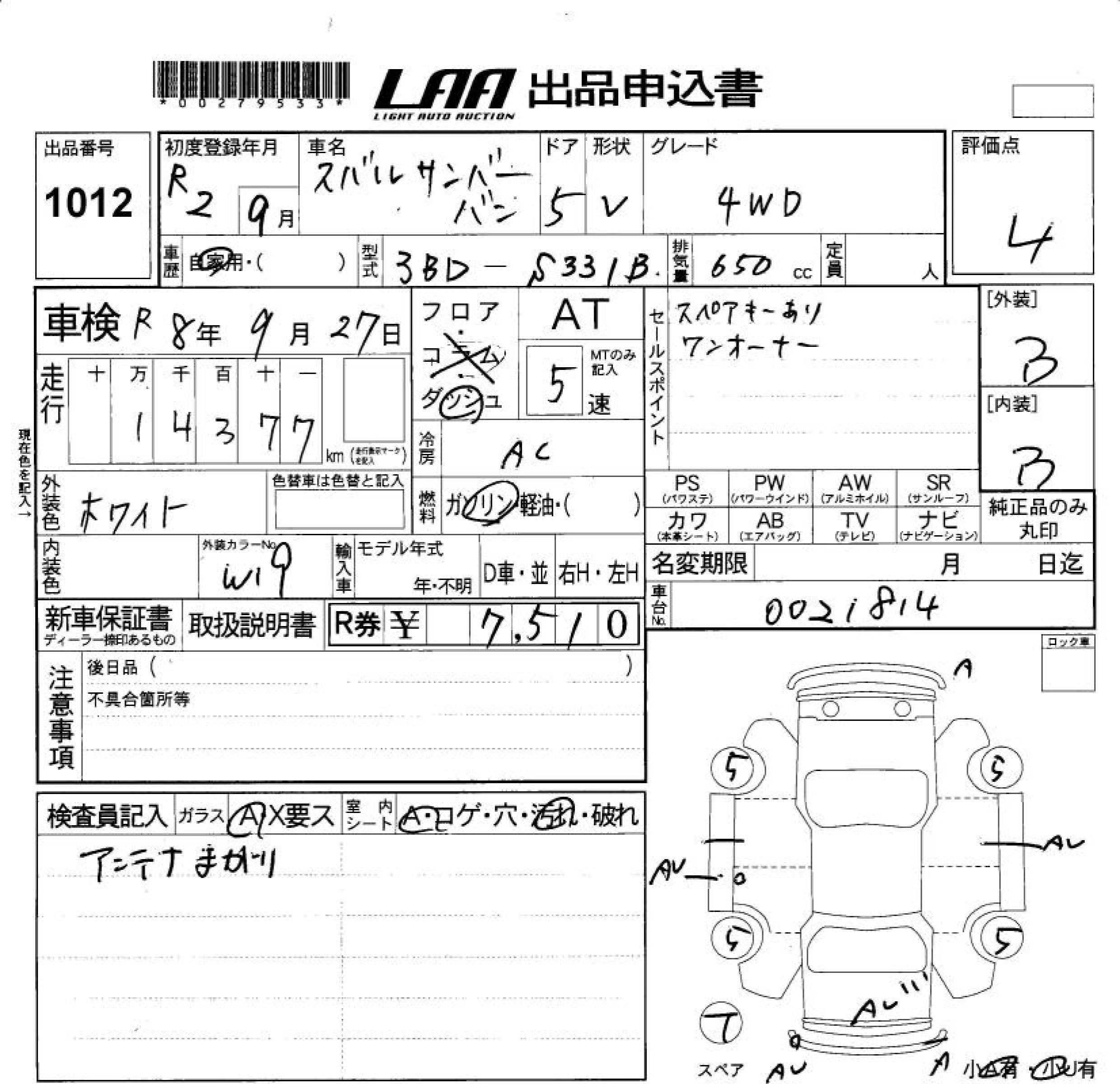 SUBARU SAMBAR VAN 4WD - лот 1012