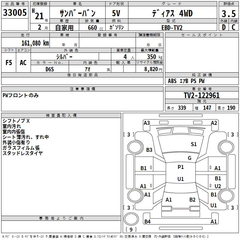 SUBARU SAMBAR VAN DIAS 4WD - лот 33005