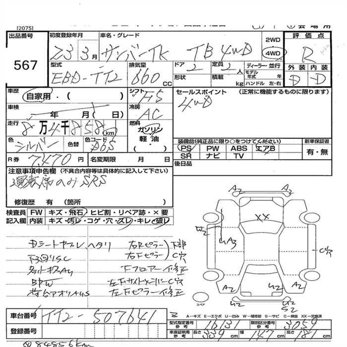 SUBARU SAMBAR 4WD TB - лот 567