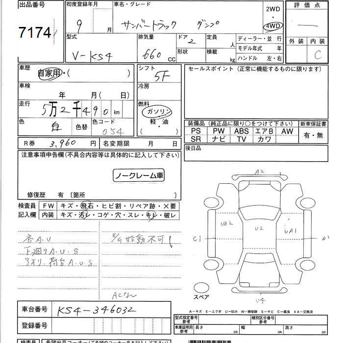 SUBARU SAMBAR 4WD DUMP - лот 7174