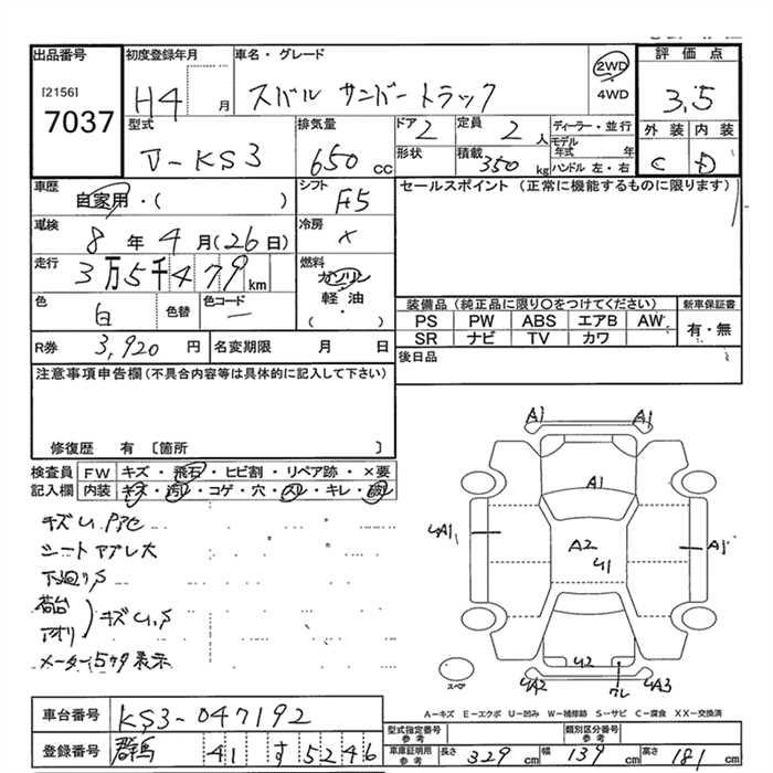 SUBARU SAMBAR - лот 7037