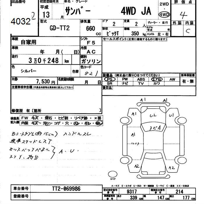 SUBARU SAMBAR 4WD JA - лот 4032
