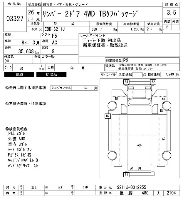 SUBARU SAMBAR TB TOUGH PACKAGE - лот 3327