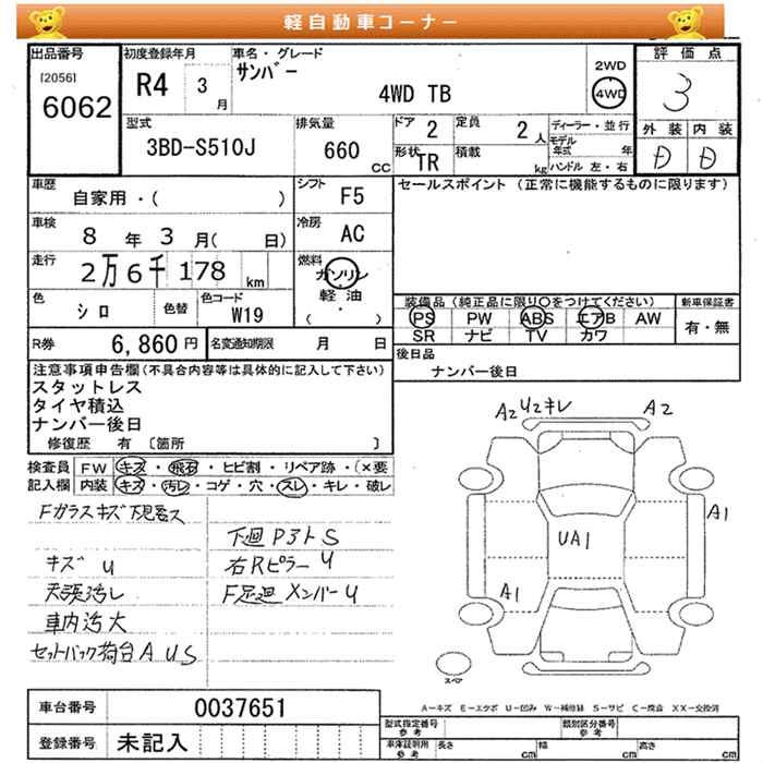 SUBARU SAMBAR 4WD TB - лот 6062