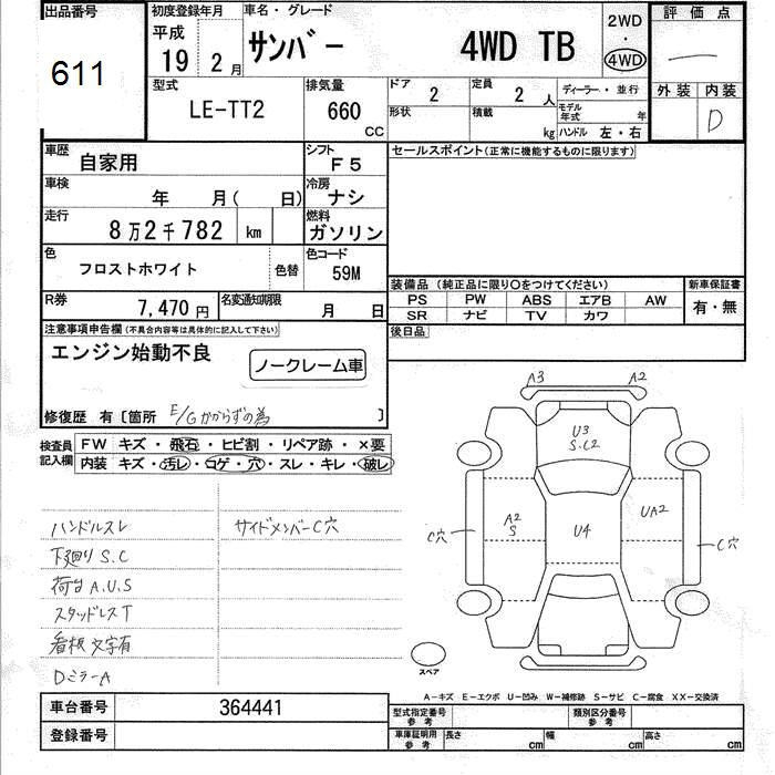 SUBARU SAMBAR 4WD TB - лот 611