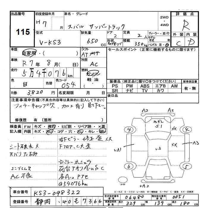 SUBARU SAMBAR - лот 115