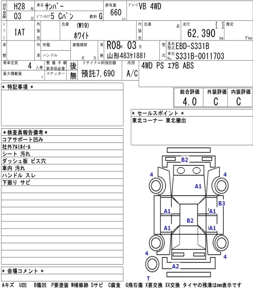 SUBARU SAMBAR VB 4WD - лот 5526