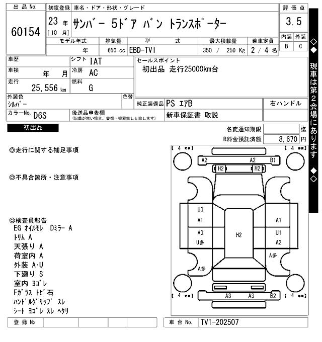 SUBARU SAMBAR TRANSPORTER - лот 60154