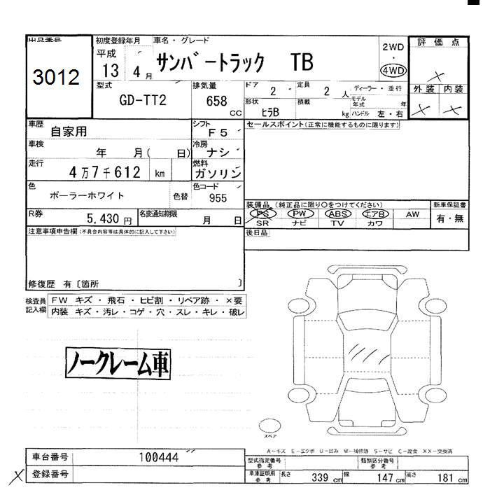 SUBARU SAMBAR 4WD TB - лот 3012