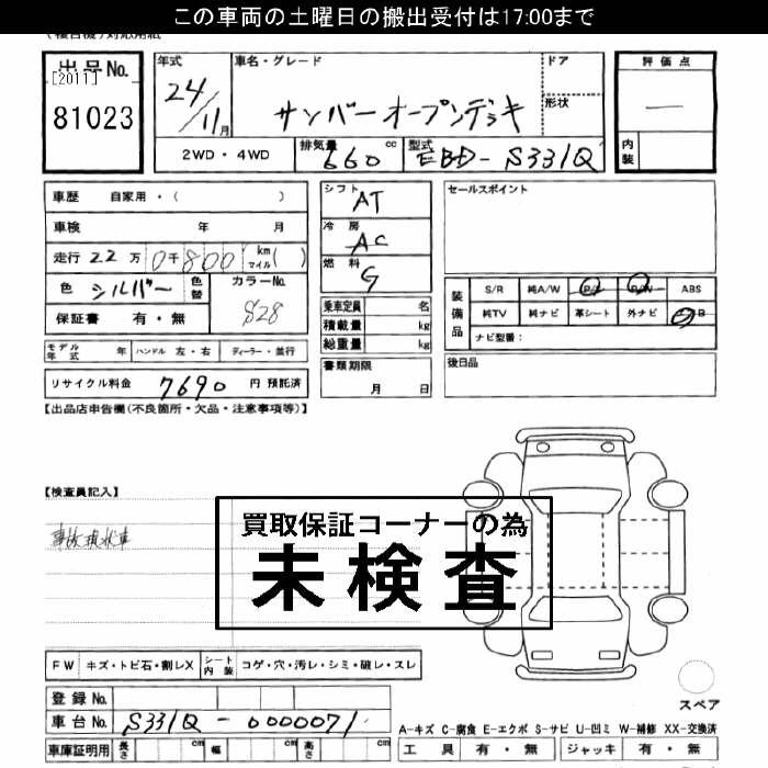 SUBARU SAMBAR OPEN DECK - лот 81023