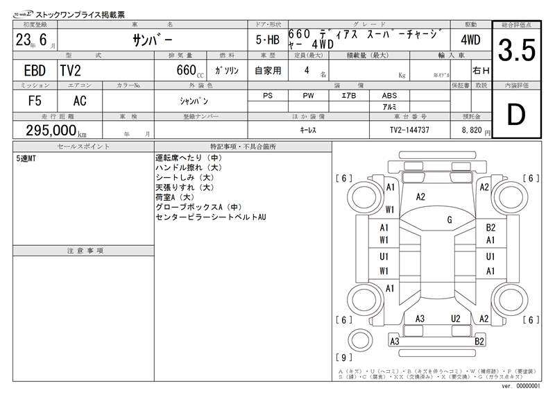 SUBARU SAMBAR - лот 9390