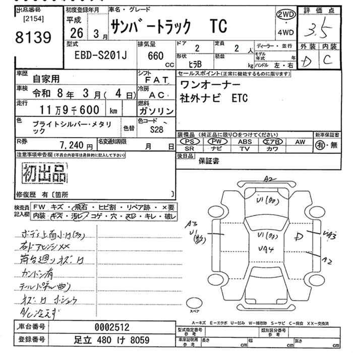 SUBARU SAMBAR TC - лот 8139