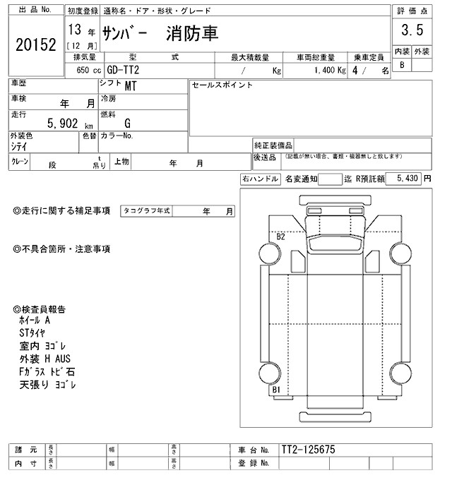 SUBARU SAMBAR FIRE-SERVICE CAR - лот 20152