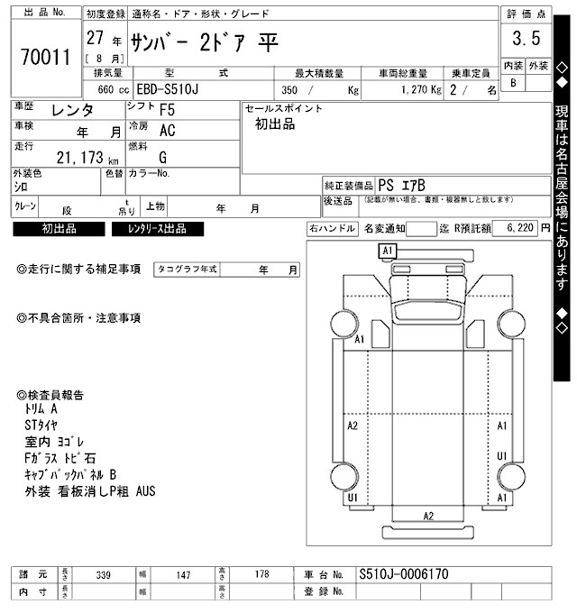 SUBARU SAMBAR COMMON - лот 70011