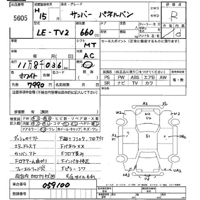 SUBARU SAMBAR PANEL VAN - лот 5605