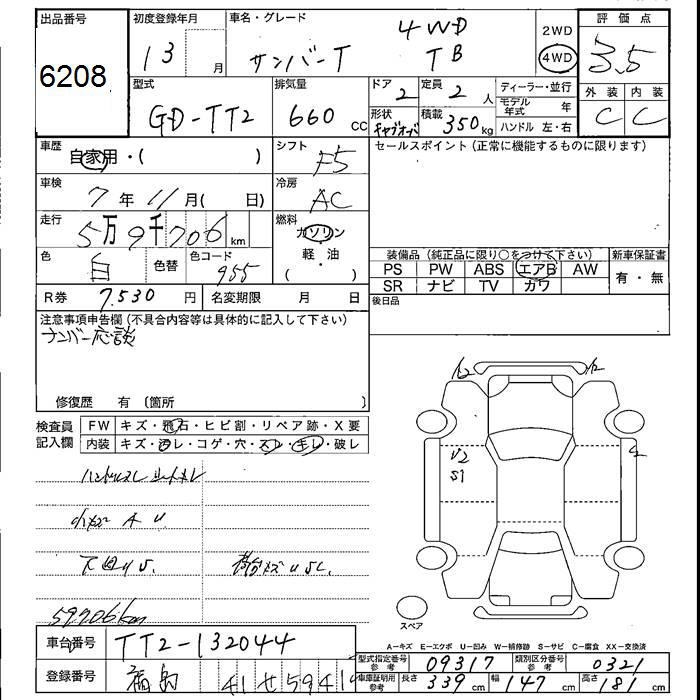 SUBARU SAMBAR 4WD TB - лот 6208