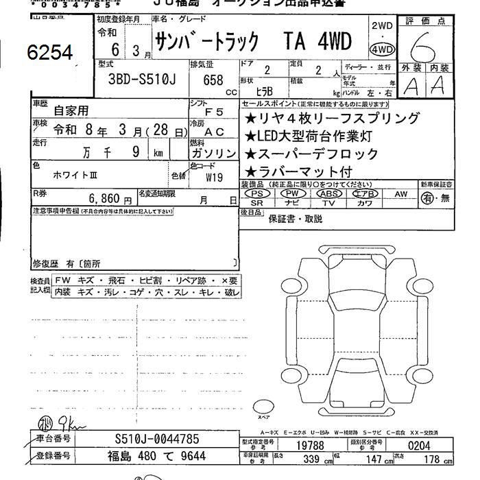SUBARU SAMBAR - лот 6254