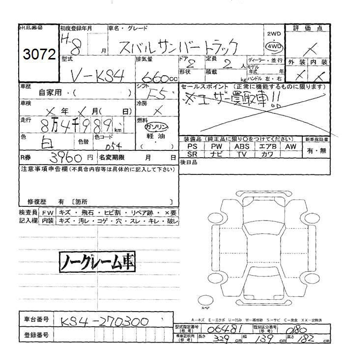 SUBARU SAMBAR - лот 3072