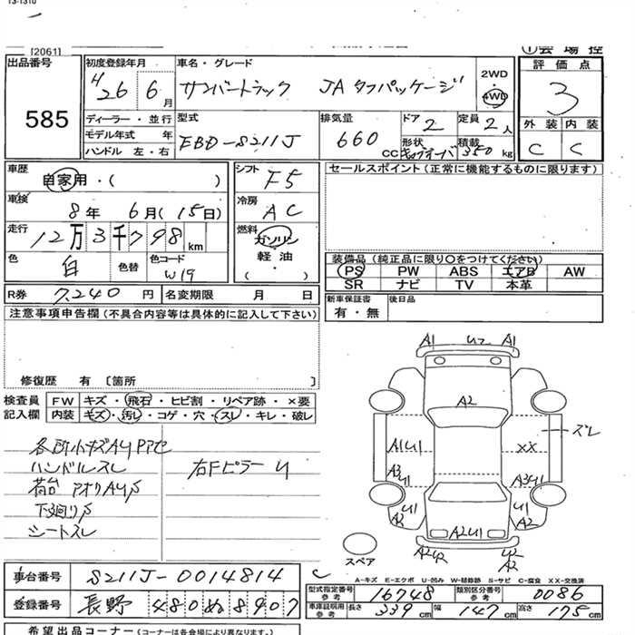 SUBARU SAMBAR - лот 585