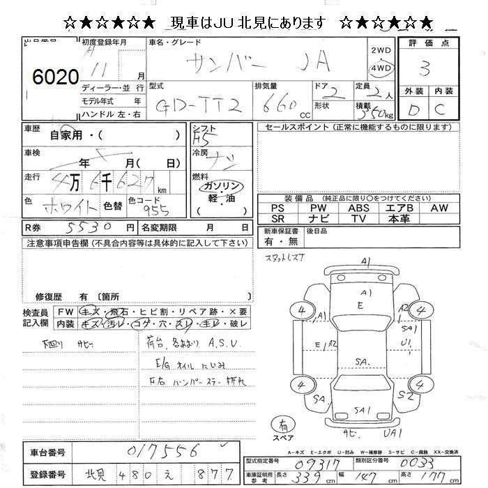 SUBARU SAMBAR - лот 6020