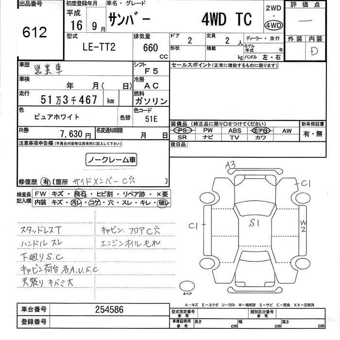 SUBARU SAMBAR - лот 612