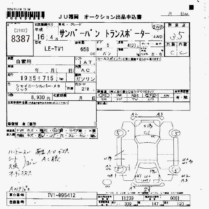 SUBARU SAMBAR TRANSPORTER - лот 8387