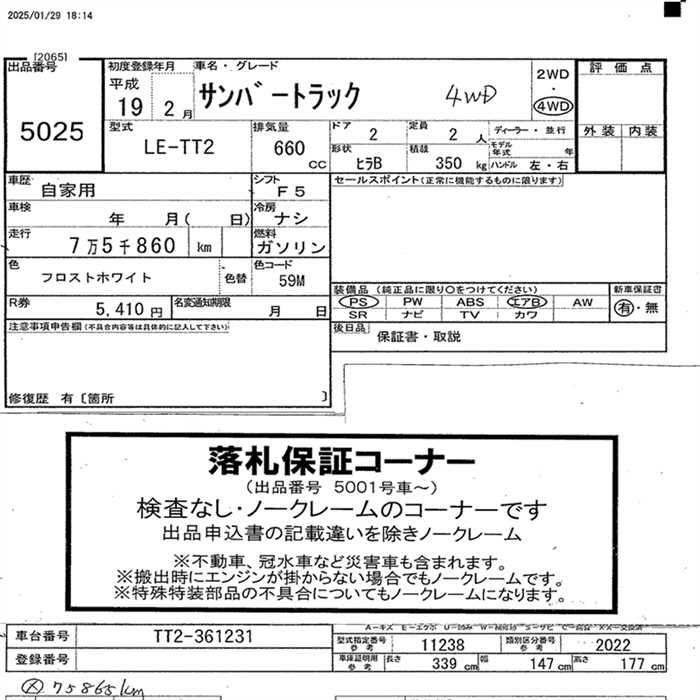 Все аукционы SUBARU SAMBAR