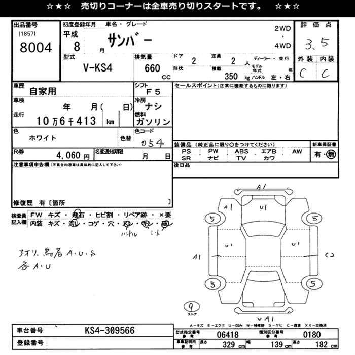 SUBARU SAMBAR - лот 8004