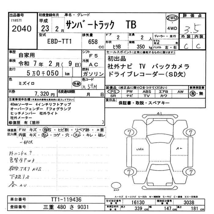 SUBARU SAMBAR TB - лот 2040