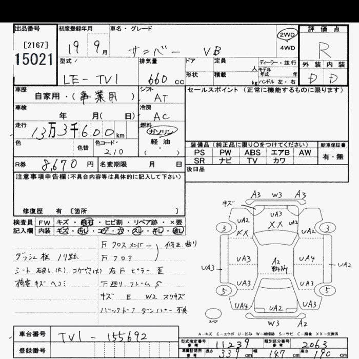 SUBARU SAMBAR VB - лот 15021