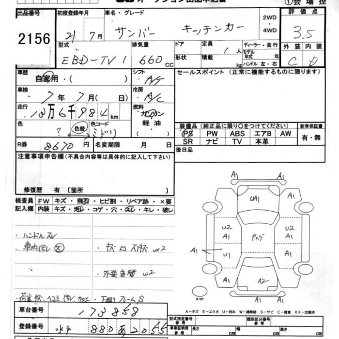 SUBARU SAMBAR KITCHEN CAR - лот 2156